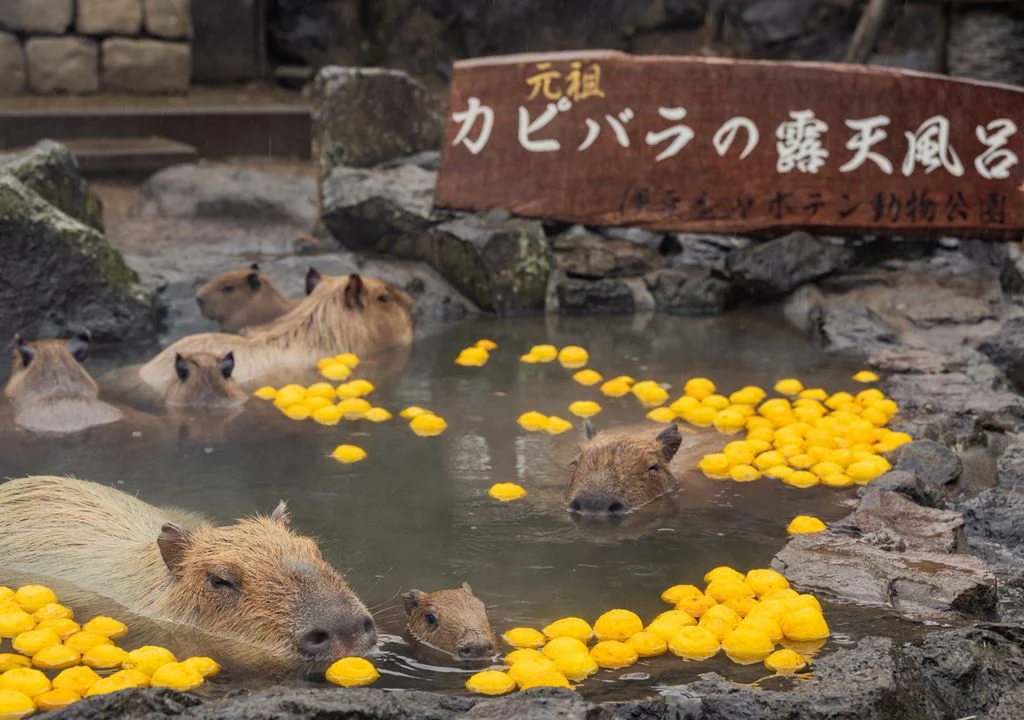 - En Japón, hay parques termales diseñados exclusivamente para carpinchos, donde se los ve relajarse como verdaderos influencers zen.