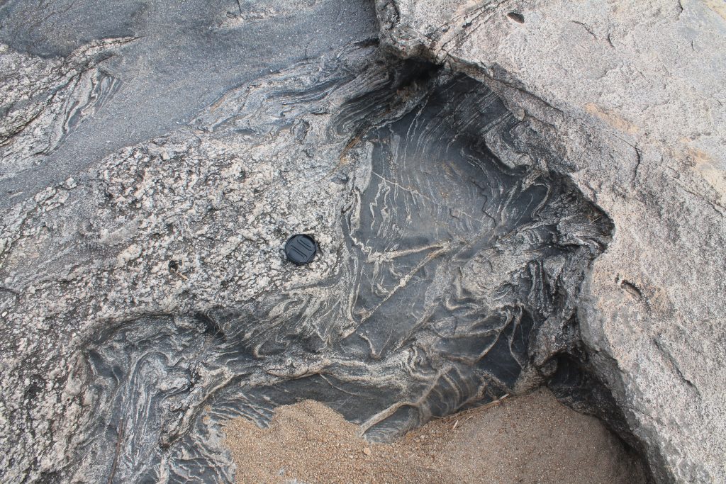 PUNTA BALLENA: punta rocosa y acantilados costeros formados por milonitas, registros de la falla de Sierra Ballena, pieza clave en la reconstrucción geotectónica del supercontinente Gondwana ∼560 Ma. Ubicación: departamento de Maldonado.