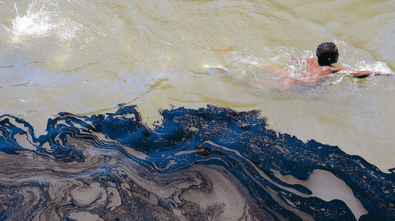 Comunidades de Colombia advertían en 2020 la presencia de petróleo en el agua del río Caquetá. Se cree que contaminación fue producida por una extracción ilegal de crudo. Foto ilustración: Angie Ramírez /Grupo Terrae.