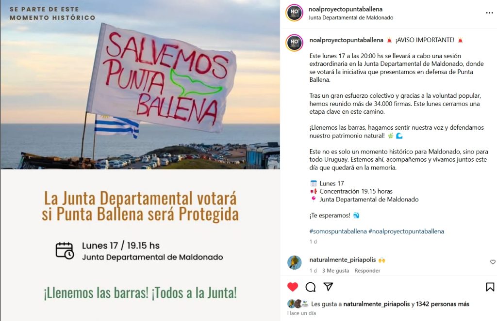 Más de 34.000 firmas, recolectadas desde marzo de 2024 por colectivos diversas organizaciones de Maldonado, han impulsado un momento decisivo: la Junta Departamental se reunirá este lunes en sesión extraordinaria, prevista para las 20:00 horas, para debatir la declaración de Punta Ballena como Área Protegida Departamental.