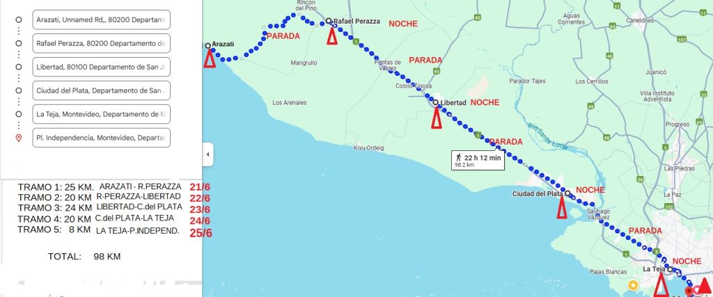 Hoy, martes 24 de junio, se cumple el cuarto día de la marcha, que continúa su trayecto a pie saliendo desde Ciudad del Plata hasta La Teja, en el departamento de Montevideo. Está previsto que al mediodía se realice una volanteada en Paso de la Arena, y a las 18:00 horas una actividad cultural en la olla popular “La Cumparista”.