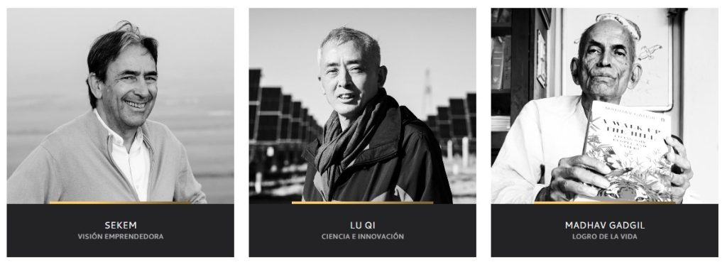 - Madhav Gadgil, un ecologista procedente de India galardonado en la categoría Trayectoria de Vida, ha dedicado décadas a proteger a las personas y el planeta a través de la investigación y el compromiso con la comunidad. Su trabajo comprende desde evaluaciones de impacto ambiental sobre las políticas estatales y nacionales hasta la participación en iniciativas comunitarias en pro del medio ambiente. Los resultados de la labor de Madhav Gadgil han influido en gran medida en la opinión pública y las políticas oficiales sobre la protección de los recursos naturales. Es reconocido por su trabajo seminal en la región ecológicamente frágil de los Ghats occidentales en la India, una zona crítica única para la biodiversidad mundial.